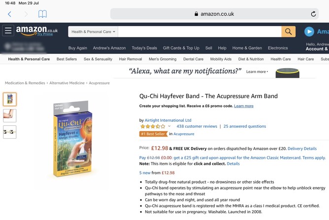 Then to top off the season the Qu-Chi hay fever band this week became a number one best seller on Amazon UK for the 6th year!!!