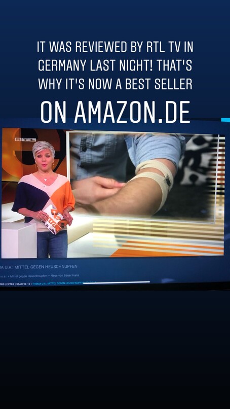 It’s certainly been a busy season for us! In April the Qu-Chi hayfever band was selected (unknowingly to us) as one of 6 hay fever relief products to be tested on a prime time German TV show (RTL). After testing the band and all the other products they concluded that the Qu-Chi hay fever band was one of two they would recommend. Overnight we became a top seller on amazon in Germany and remained there for over 3 months! Here is a link to the tv show
